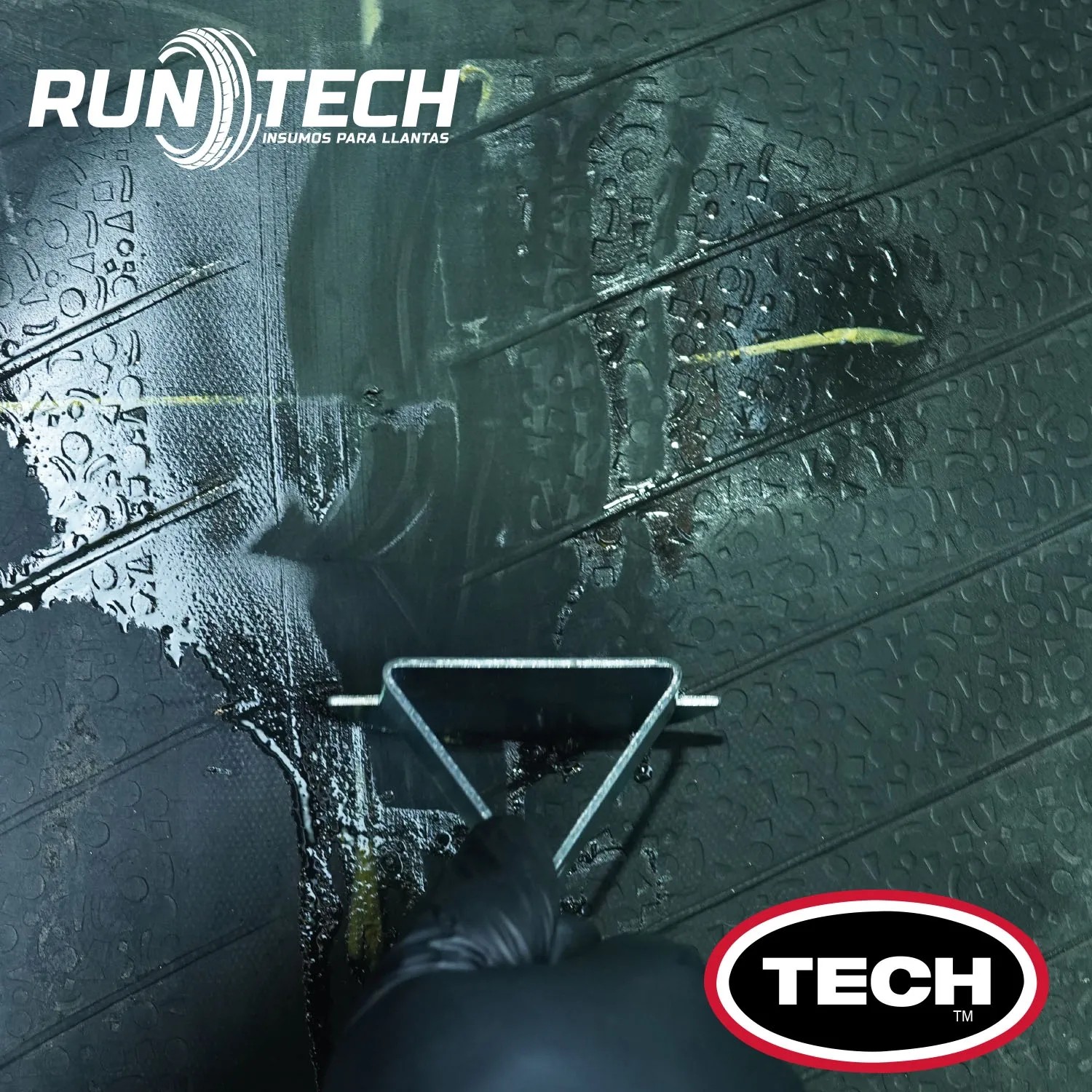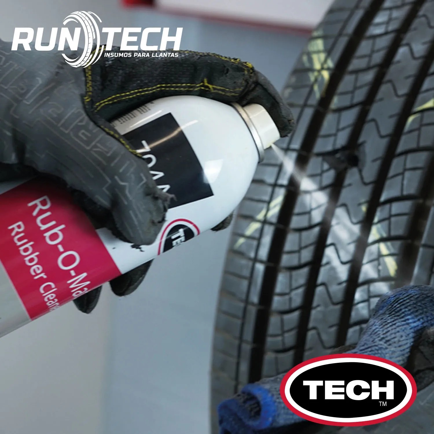 El limpiador RUB-O-MATIC TECH se utiliza para remover contaminación del inner liner antes de iniciar el proceso de reparación de una llanta, lo que evita posibles fallas de adhesión en la vulcanización ocasionadas por contaminación.