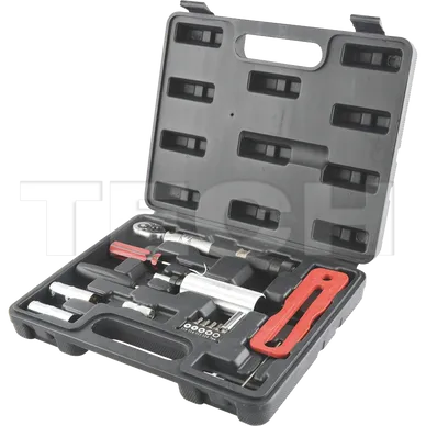 Este kit de herramientas TPMS incluye todo lo necesario para reparar o reemplazar sensores TPMS. Contiene: llave dinamométrica TPMS, herramienta de torsión para válvulas y sensores, llaves hexagonales de 7 mm, 11 mm y 12 mm, puntas Torx de 10, 15 y 20 mm, herramienta de torsión para el núcleo de la válvula, herramienta para quitar ojales, selección de ojales y herramienta para válvulas de 2 vías.